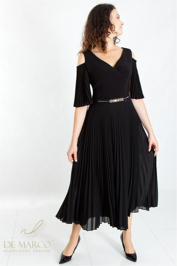 Czwartą propozycją jest wizytowa sukienka De Marco Ayla IV, która zachwyca rozkloszowanym krojem oraz plisowanym dołem. Dzięki wiskozowej podszewce kreacja doskonale układa się w ruchu, szczególnie na parkiecie, oferując niezwykłą swobodę i komfort. Ayla IV to połączenie klasycznej elegancji z nowoczesną lekkością – propozycja idealna dla Pań, które cenią sobie wygodę bez kompromisów w kwestii stylu.