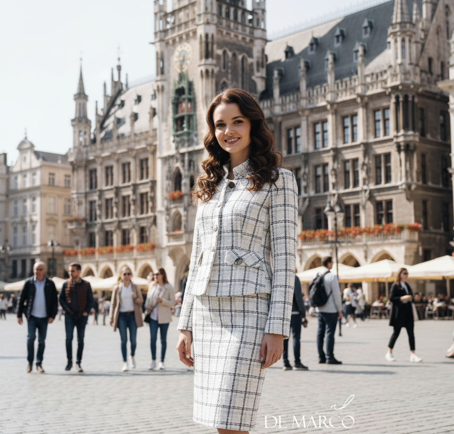 W Atelier De Marco oferujemy szycie na miarę tweedowych żakietów, garsonek i kompletów.
