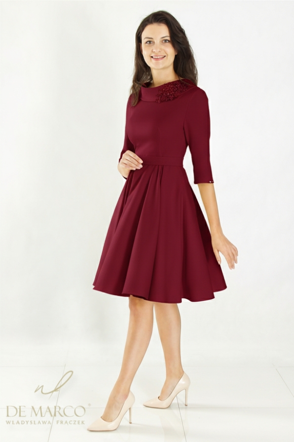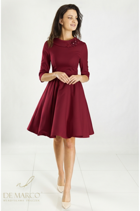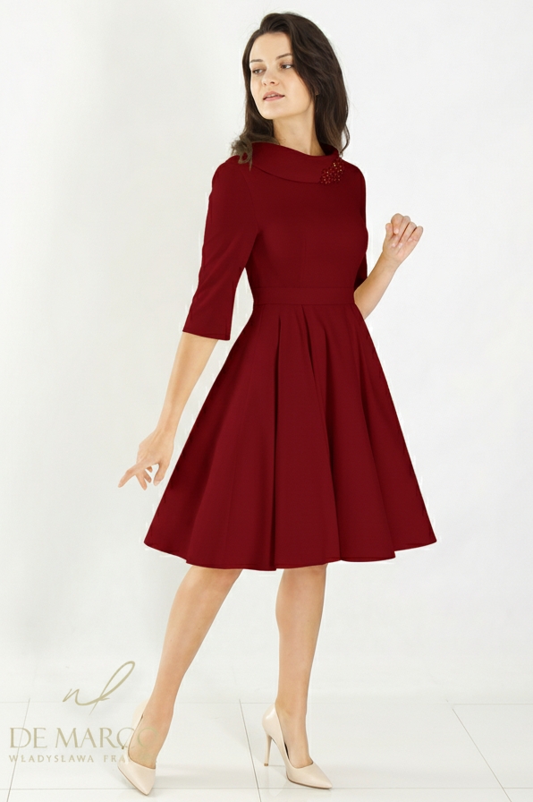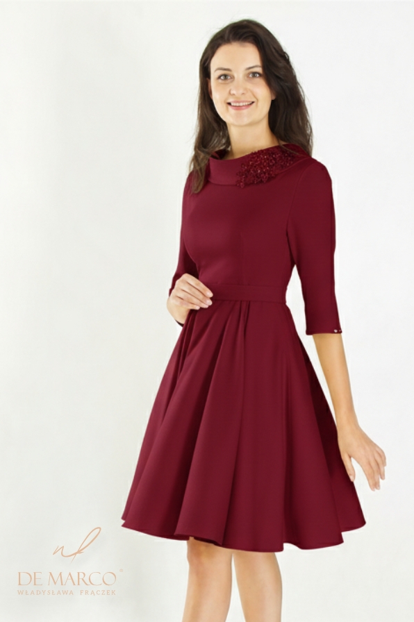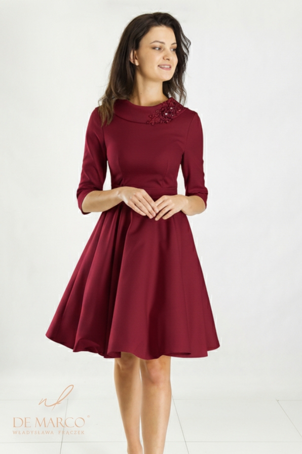 Eleganckie krótkie sukienki rozkloszowane bordo/burgund szyte na miarę