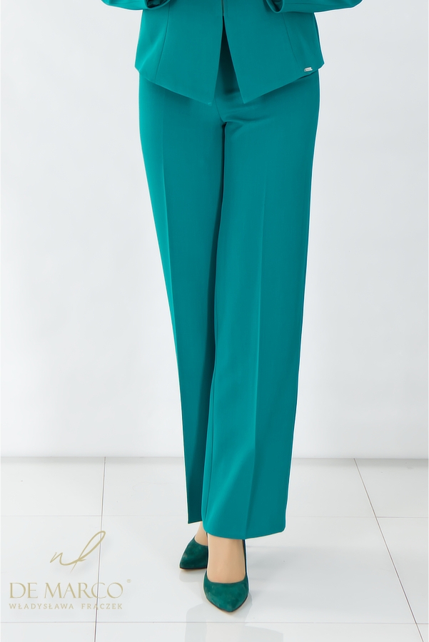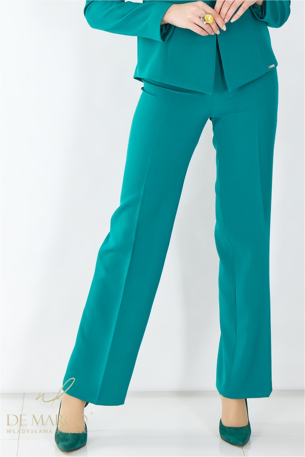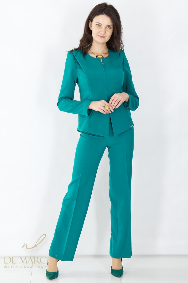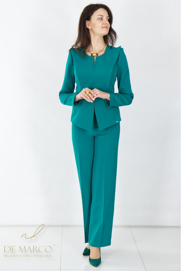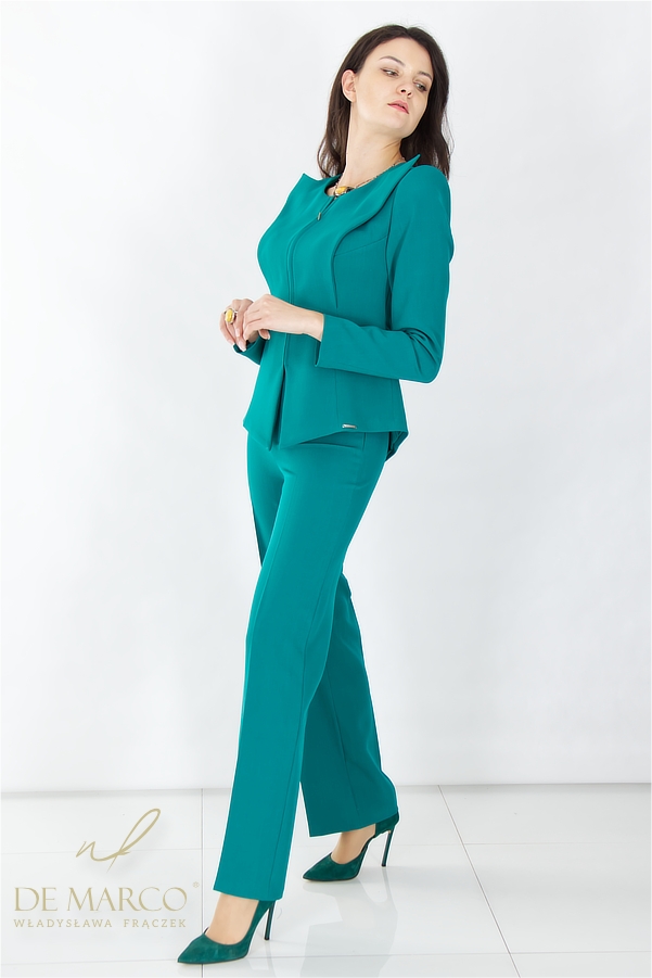Nowoczesny dwuczęściowy zielony komplet ze spodniami i żakietem dla kobiet biznesu