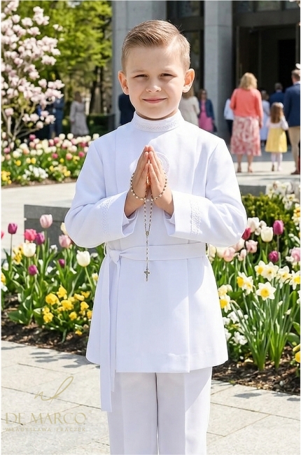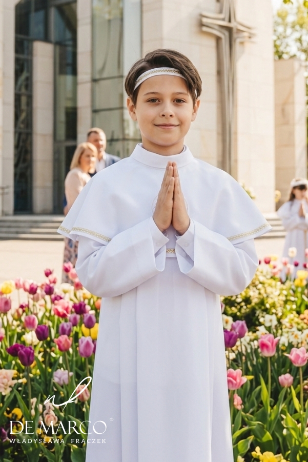 Pierwsza Komunia Święta to jedna z najważniejszych uroczystości w życiu każdego dziecka. Przygotowania do tego wyjątkowego dnia obejmują zarówno duchowe, jak i wizualne aspekty ceremonii. Strój komunijny, będący symbolem czystości i niewinności, odgrywa kluczową rolę w podkreśleniu podniosłego charakteru tego wydarzenia. W pracowni De Marco z dumą oferujemy komże i alby komunijne dla chłopców szyte na miarę, które łączą w sobie elegancję, komfort i najwyższą jakość wykonania.